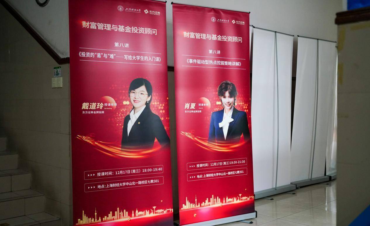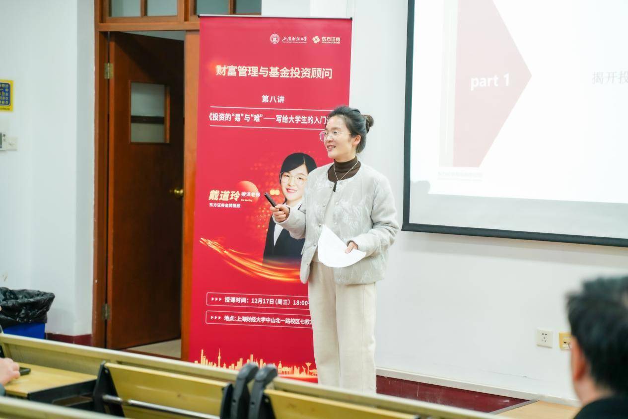 2026-01-02博鱼体育,博鱼体育官方网站,博鱼体育APP下载2025年12月17日晚,东方证券与上海财经大学联合举办的《财富管理与基金投资顾问》第八讲——本系列最后一讲课程在中山北一路校区七教301教室完美收官。本次课程由东方证券金牌投顾、东方证券南京北京东路营业部营销副总戴道玲老师主讲《投资的“易”与“难”——写给大学生的入门课》,以及东方证券金牌投顾、CWM国际财富管理师肖夏老师主讲《事件驱动型热点挖掘策略讲解》。两位主讲嘉宾从投资入门的认知突破与心态修炼,到事件驱动的热点逻辑与实战技巧,为来自上海财经大学、复旦大学、华东政法大学等多所高校的学子,献上了一场兼具实战价值与行业洞察的财富管理思想盛宴。