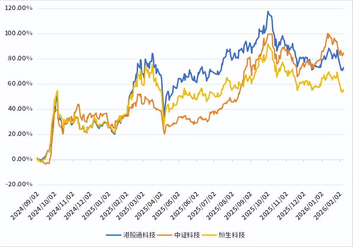 事实上,去年10月以来,港股科技股一路下跌,相较于1月底创下4年新高的恒生指数,以及此前创下十年新高的上证指数,走出了一波“反向独立行情”。(数据来源:Wind,统计区间为2025.10.01-2026.02.09)
